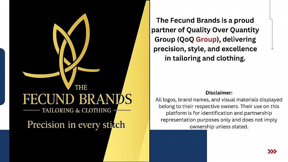The Fecund Brands is a proud partner of Quality Over Quantity Group (QoQ Group), delivering precision, style, and excellence in tailoring and clothing.